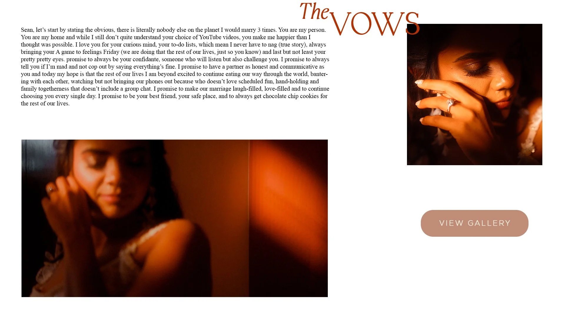 "I promise to always be your confidante, someone who will listen but also challenge you. I promise to always tell you if I’m mad and not cop out by saying everything’s fine. I promise to have a partner as honest and communicative as you and today my hope is that the rest of our lives I am beyond excited to continue eating our way through the world, bantering with each other, watching but not bringing our phones out because who doesn’t love scheduled fun, hand-holding and family togetherness that doesn’t include a group chat.