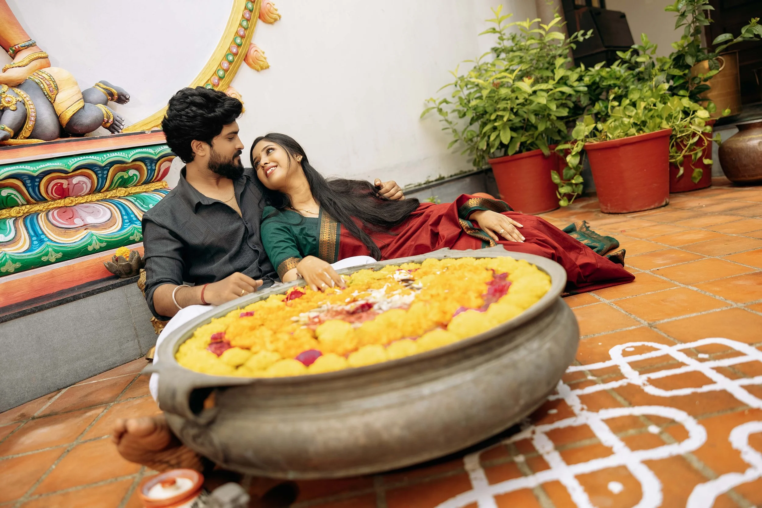 Sekar & Anu – A Love Story captured by Moments From Heaven Celebrating gentle backwaters, ancient echoes, and love in every whispered moment Their journey begins where the world slows down, amid the peaceful ripples of backwaters, where each gentle wave mirrors their unspoken emotions. Sekar and Anu drift in harmony, surrounded by nature’s soft symphony. From there, their adventure took them to a ruined fort, its weathered walls whispering tales of time. In that majestic decay, their love found a poetic edge, a timeless charm that echoed through crumbling stones. As the skies turned dramatic over a dried lake, longing and desire swirled in the clouds, shadow and light dancing in reflection of the depth of their connection. It was nature’s way of speaking their love back to them. Finally, in the warm embrace of a traditional house the next morning, Anu stood in the soft morning glow, her saree flowing, as Sekar looked on with gentle devotion. In that quiet, golden moment, love wrapped around them with serene enchantment.