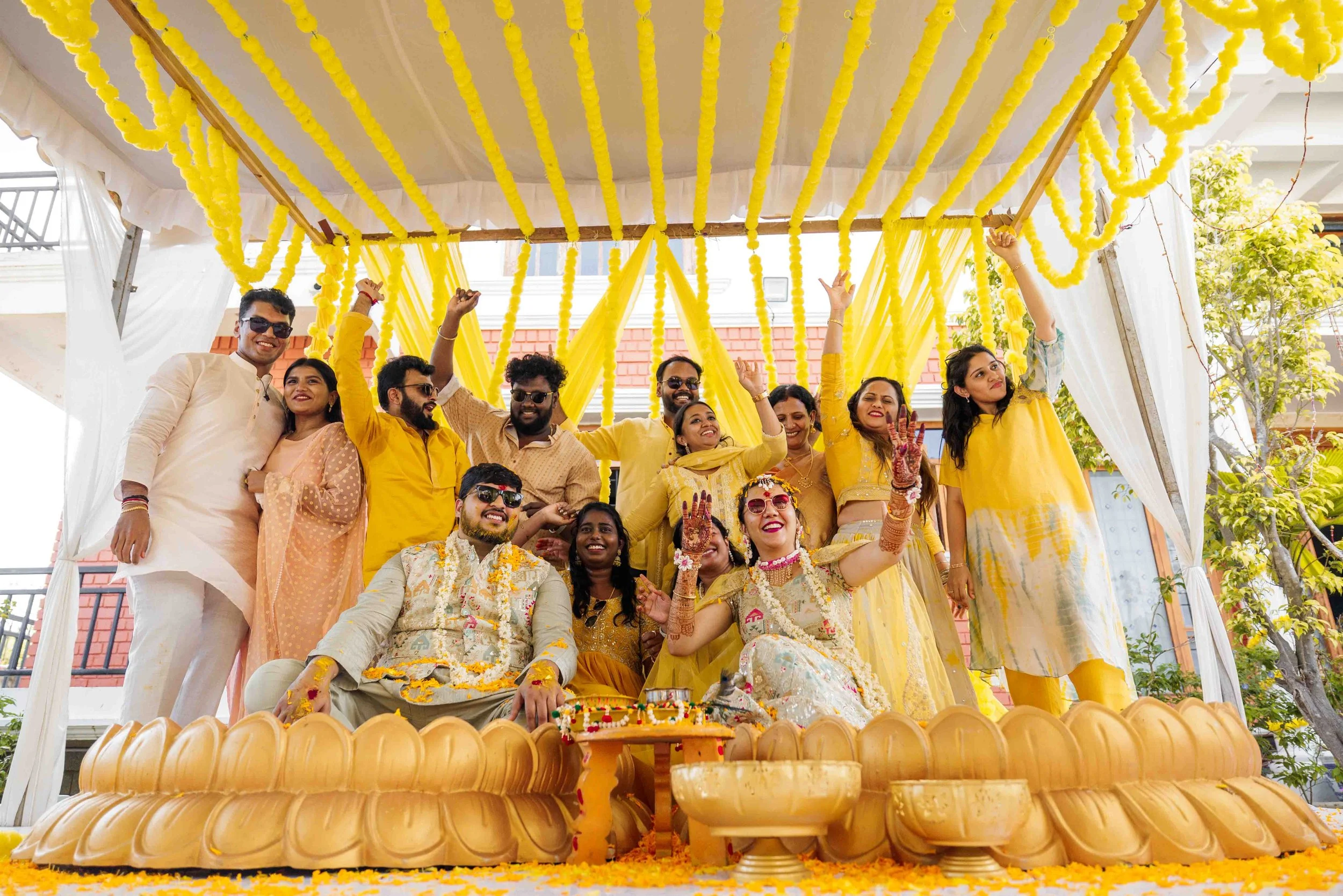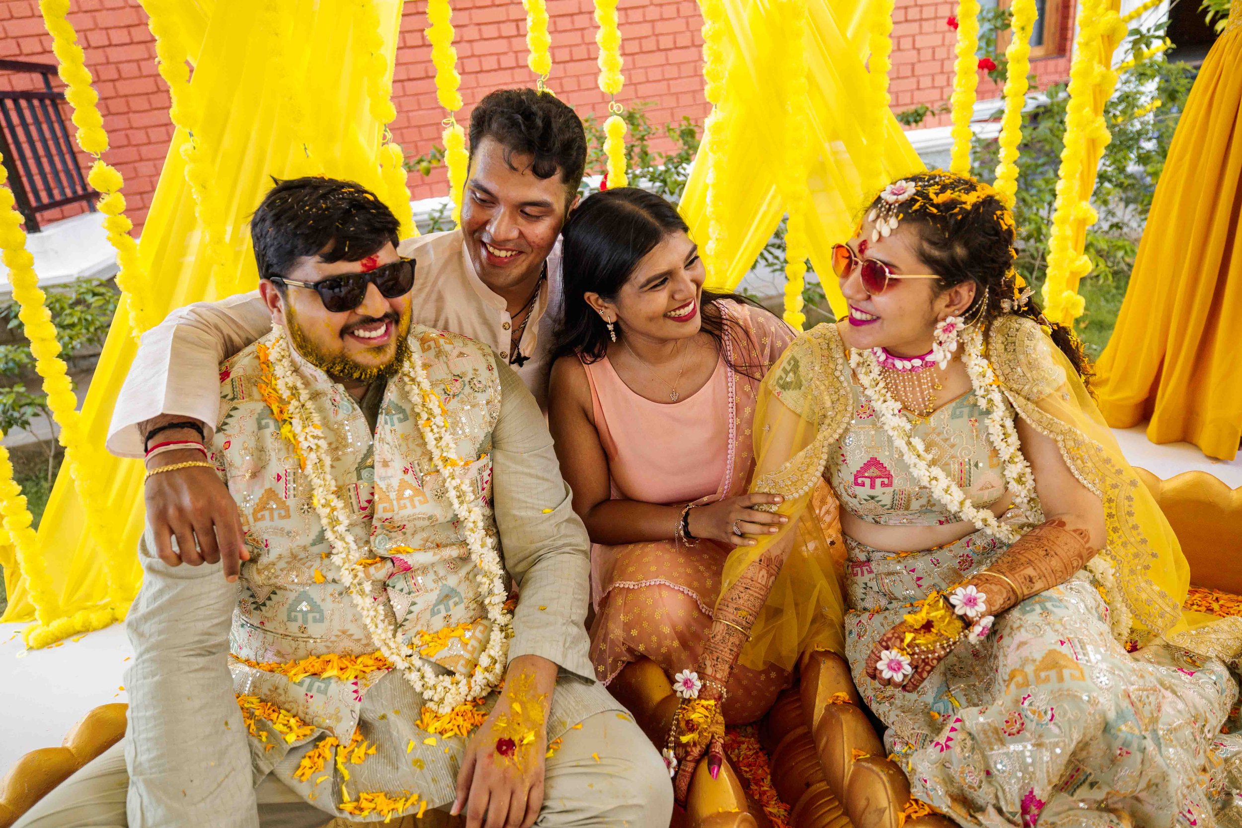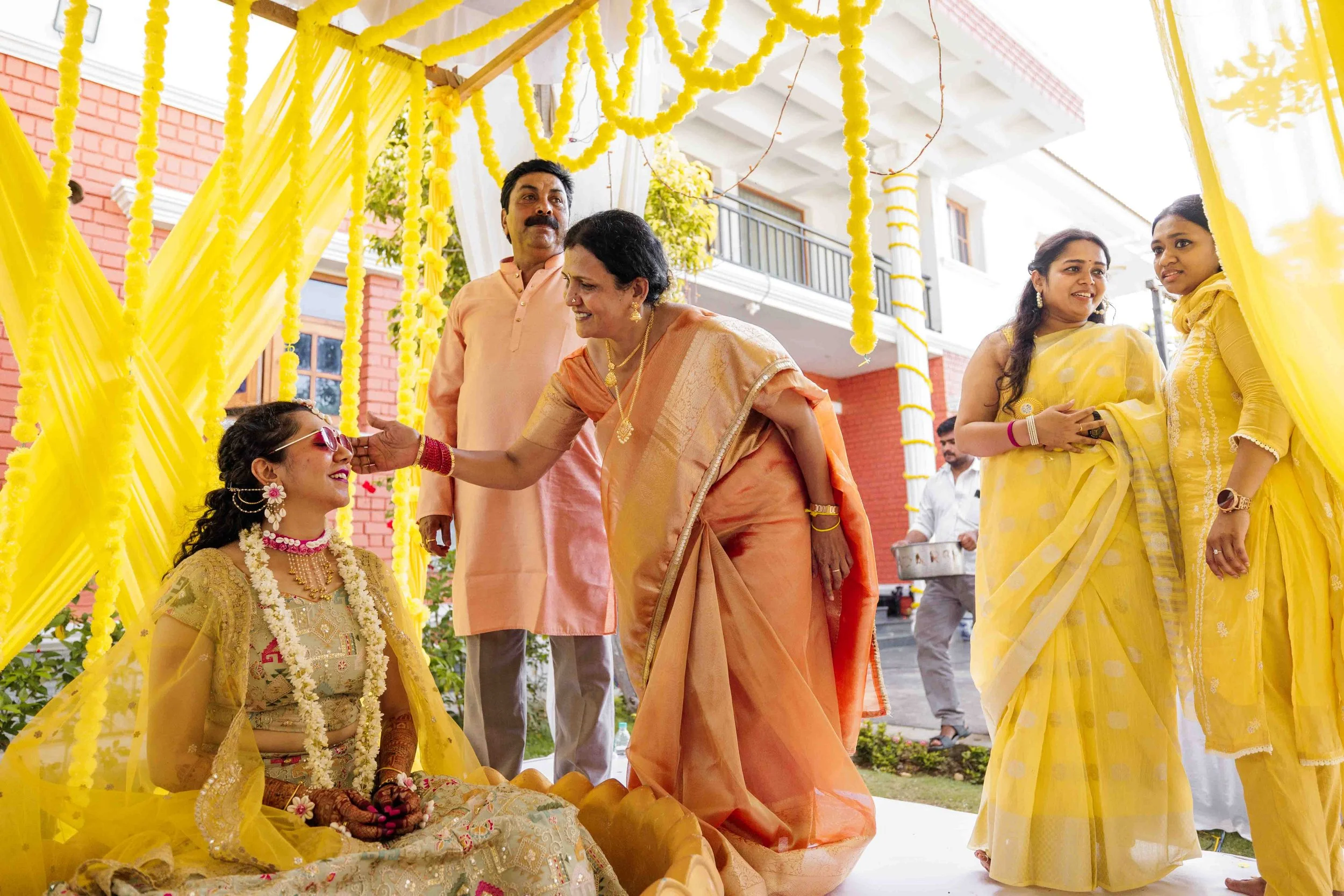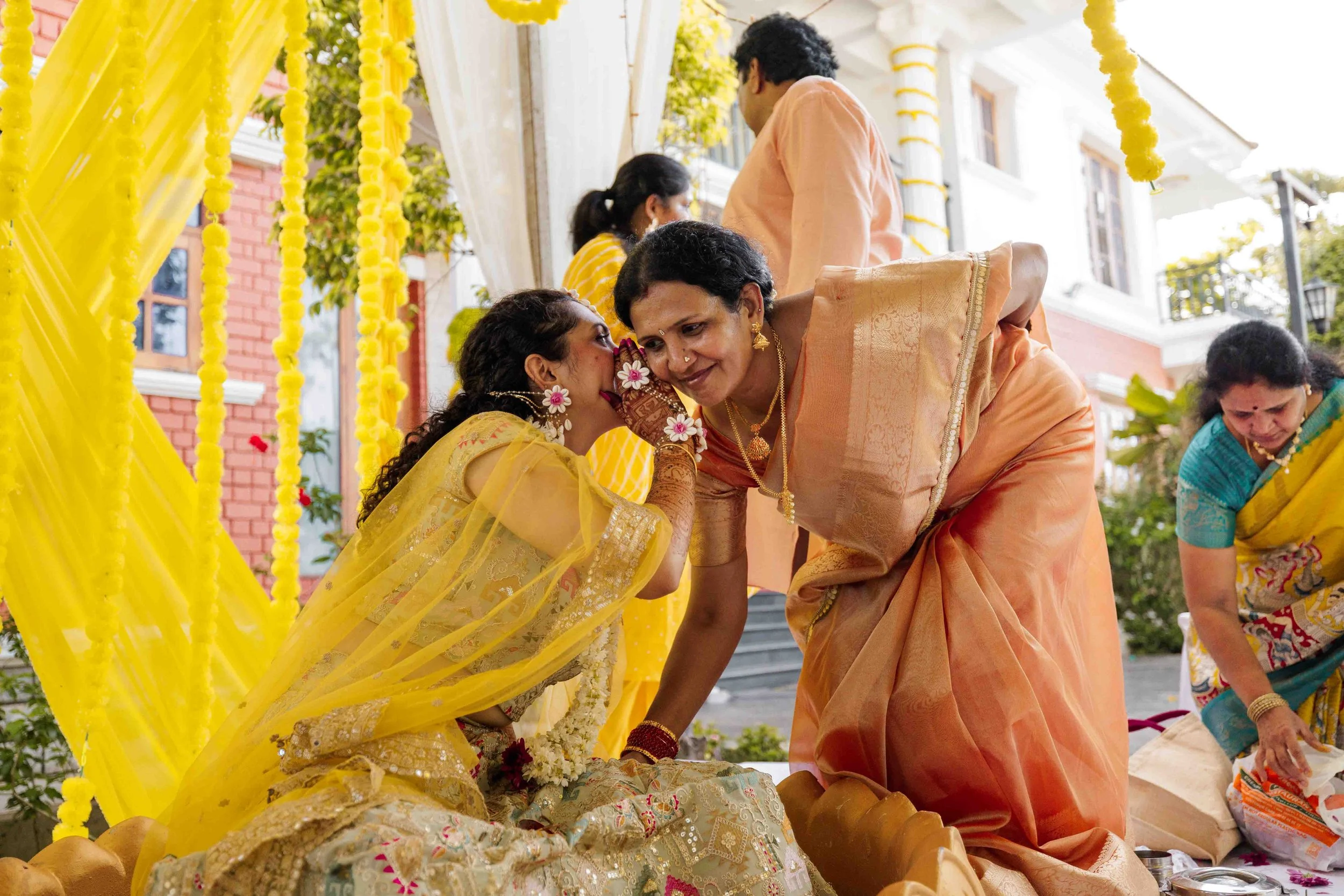 A Golden Day of Joy, Captured by Moments From Heaven Celebrating playful traditions, radiant laughter, and love glowing in golden hues Amirtha and Shyam's Haldi ceremony was a vibrant embrace of both tradition and playful warmth. Dressed in sunshine-hued attire and surrounded by loved ones, the couple was showered with turmeric, laughter, and live celebration, each moment glowing with energy and affection. The decor, awash in marigold tones, set a dreamy scene, petals in the air, turmeric-smeared smiles, and families coming together in a shared moment of joy. As the Haldi paste was lovingly applied, every giggle and teasing glance felt like a promise of forever. Captured by Moments From Heaven, these images go beyond ritual, they transport you into the heart of a love story painted in gold, laughter, and memory.