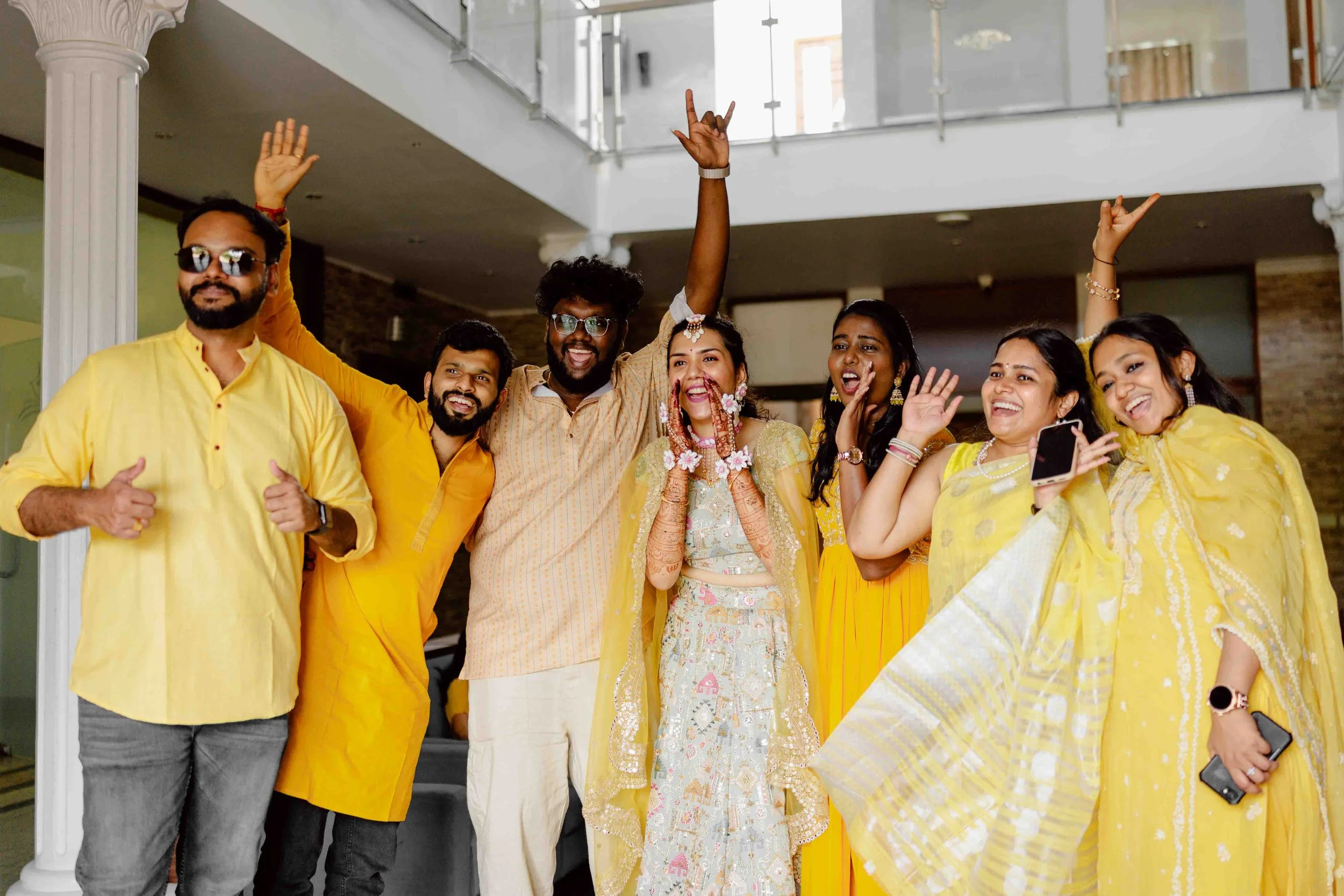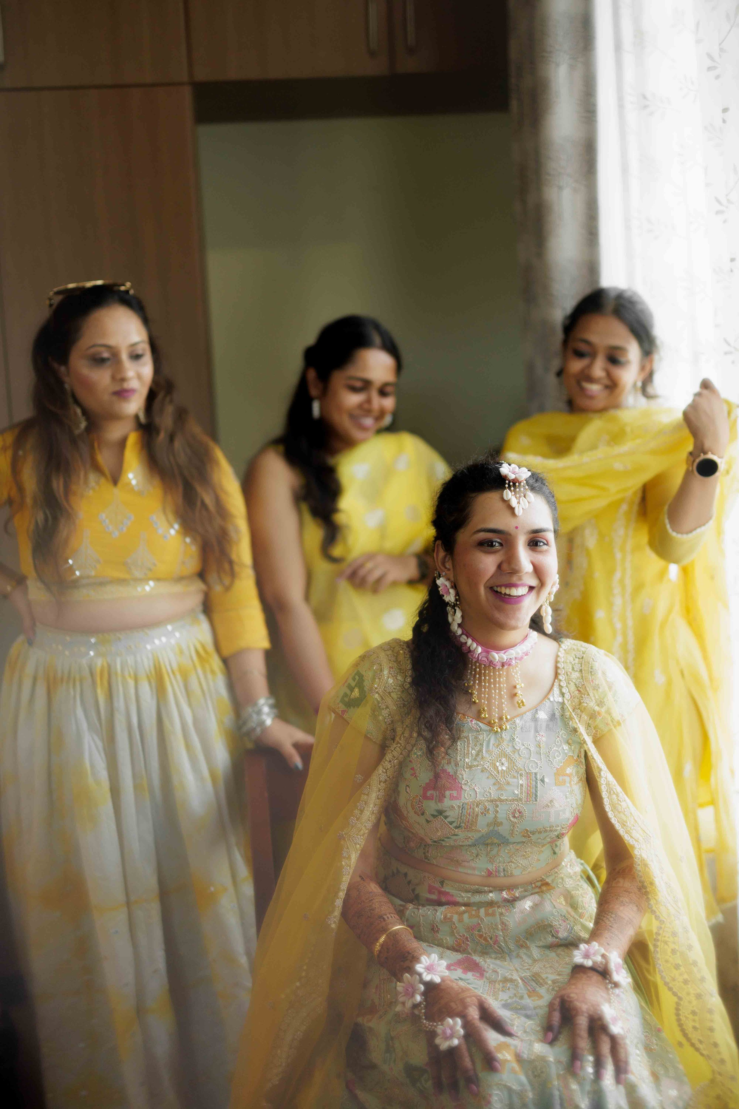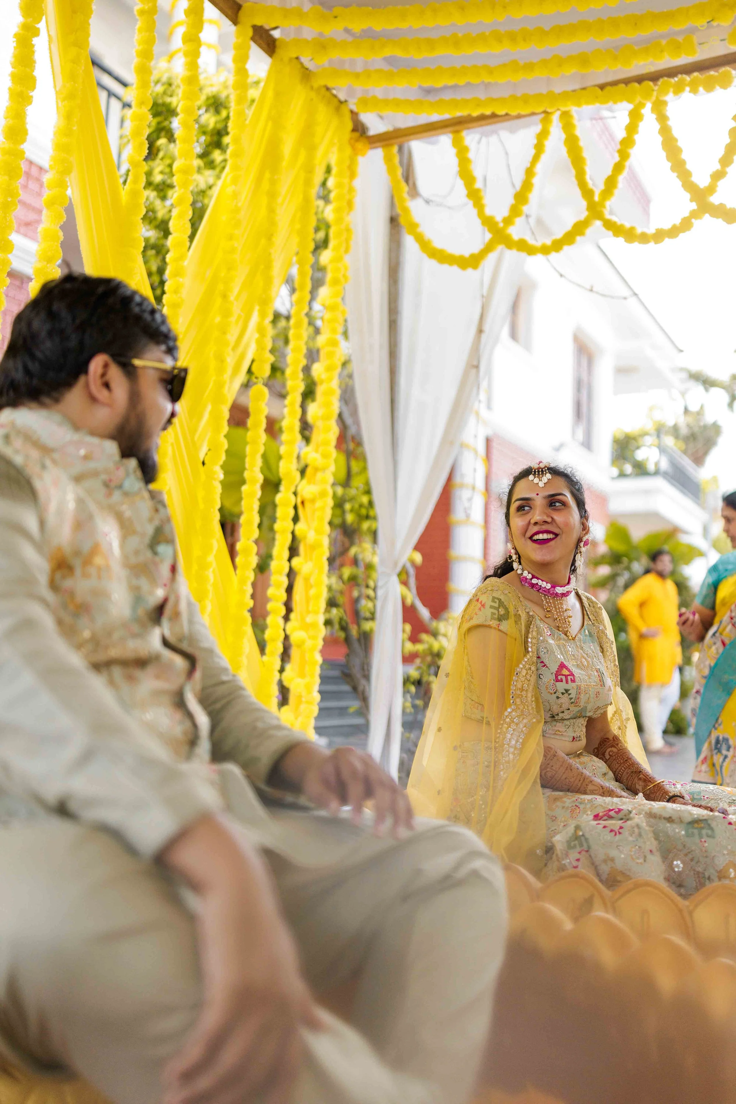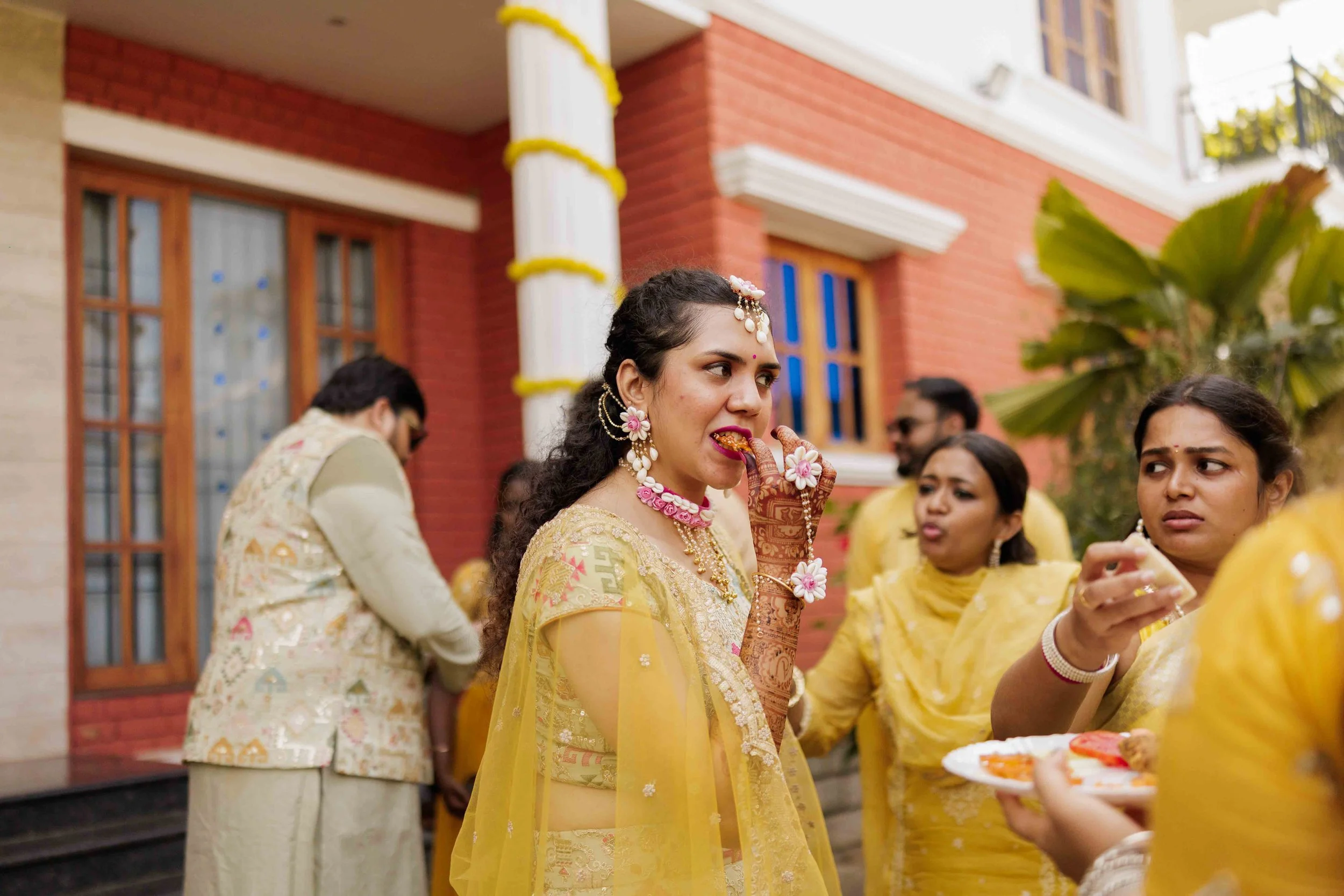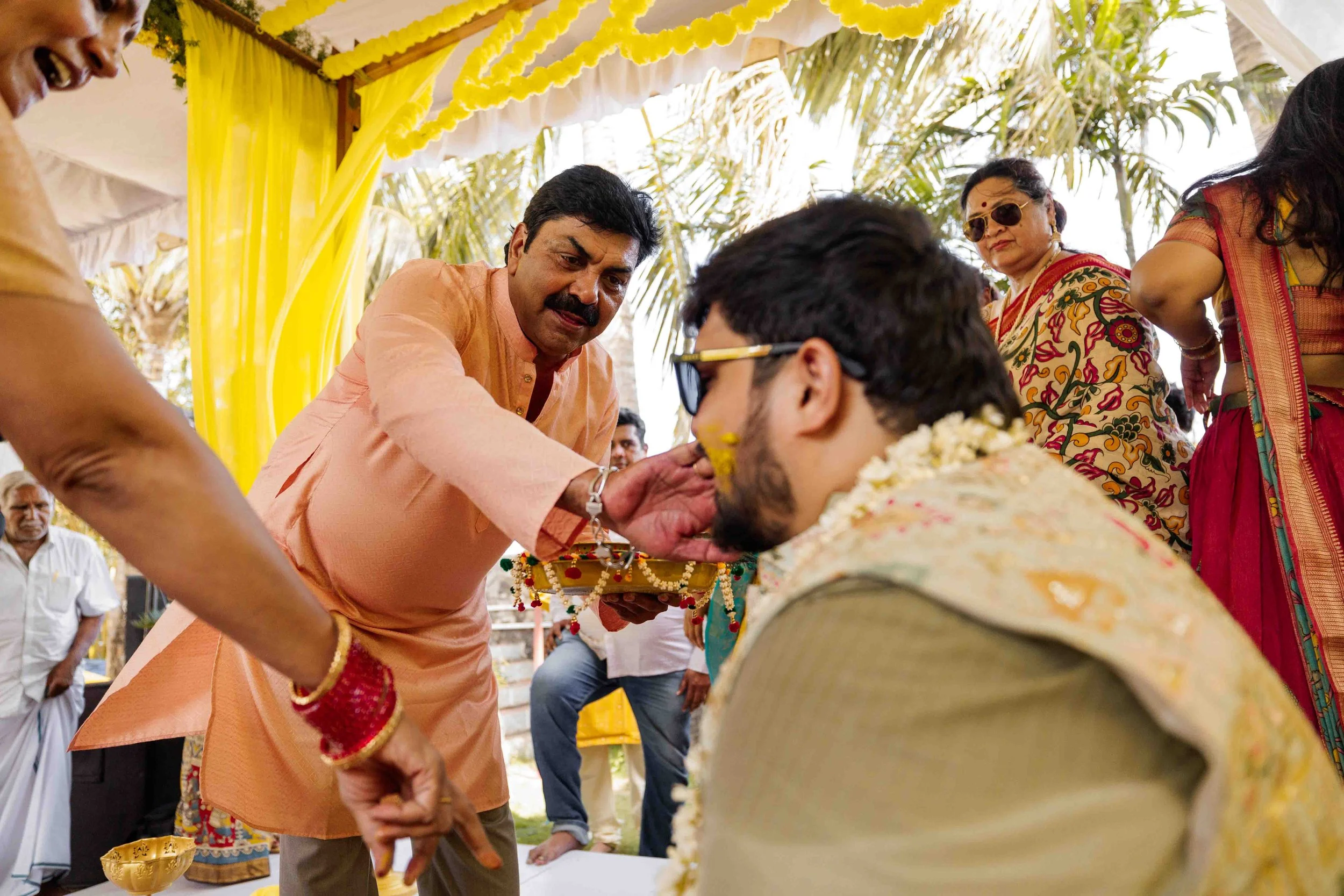A Golden Day of Joy, Captured by Moments From Heaven Celebrating playful traditions, radiant laughter, and love glowing in golden hues Amirtha and Shyam's Haldi ceremony was a vibrant embrace of both tradition and playful warmth. Dressed in sunshine-hued attire and surrounded by loved ones, the couple was showered with turmeric, laughter, and live celebration, each moment glowing with energy and affection. The decor, awash in marigold tones, set a dreamy scene, petals in the air, turmeric-smeared smiles, and families coming together in a shared moment of joy. As the Haldi paste was lovingly applied, every giggle and teasing glance felt like a promise of forever. Captured by Moments From Heaven, these images go beyond ritual, they transport you into the heart of a love story painted in gold, laughter, and memory.