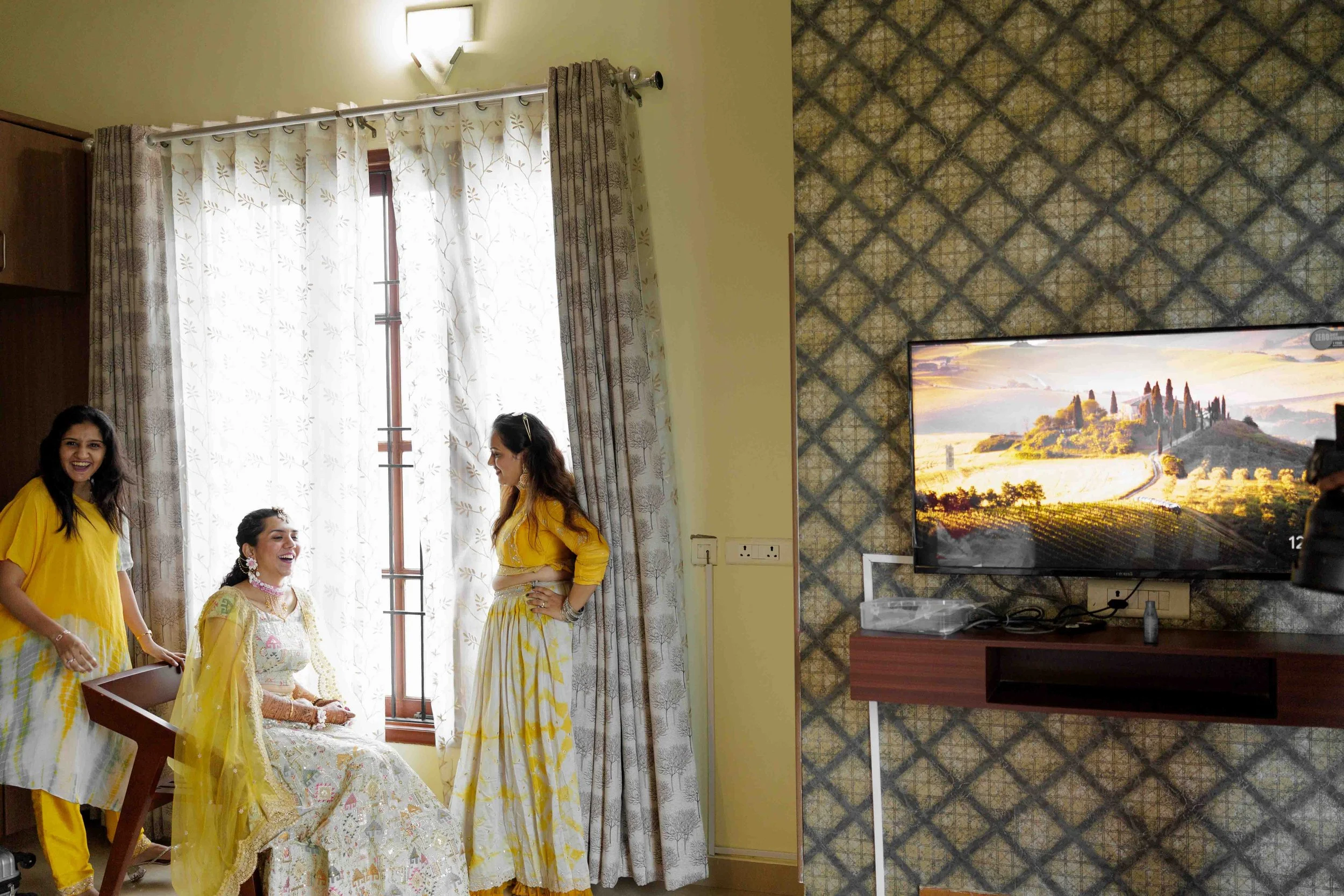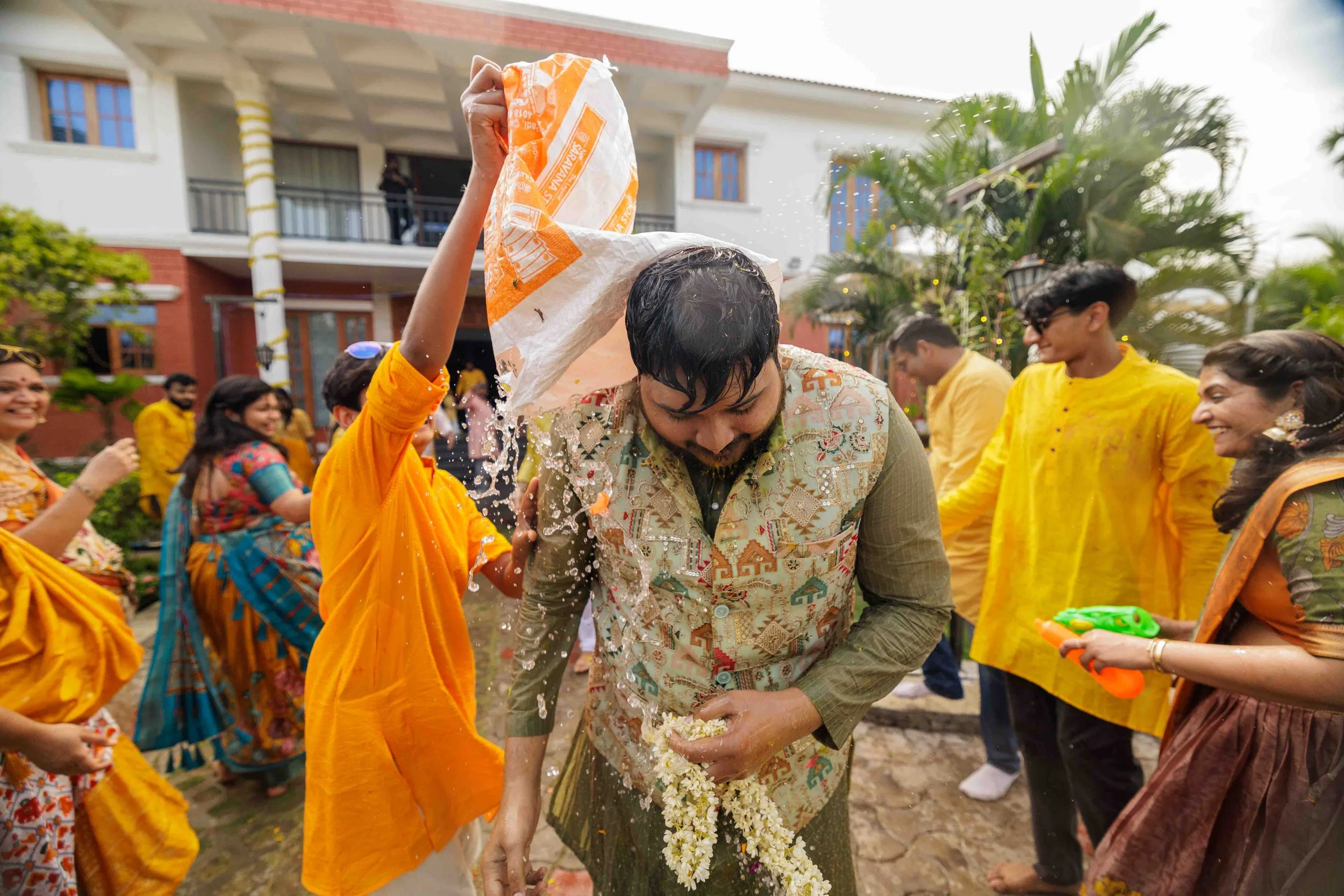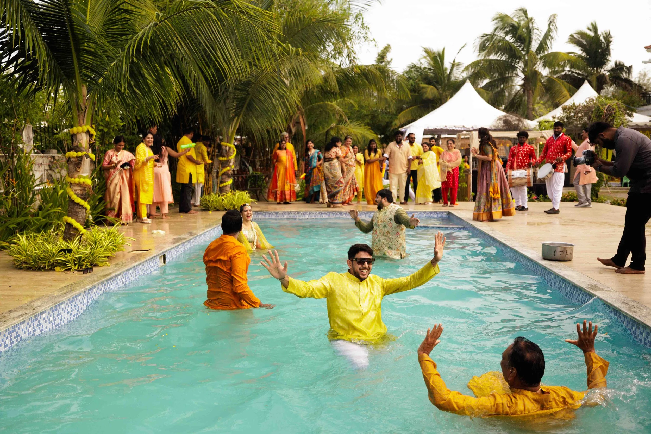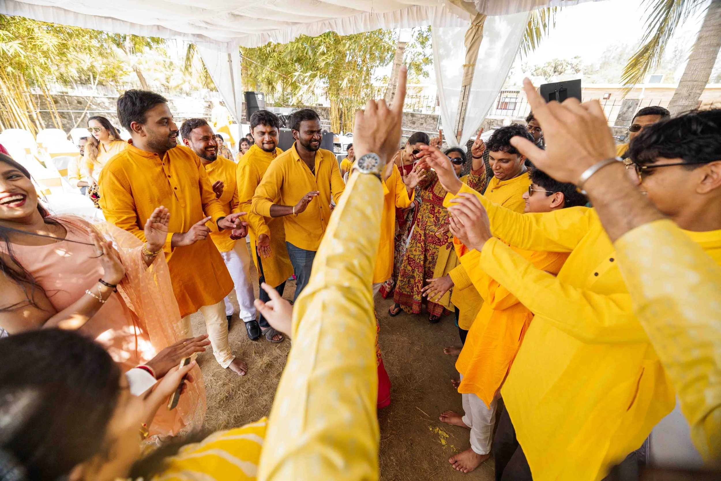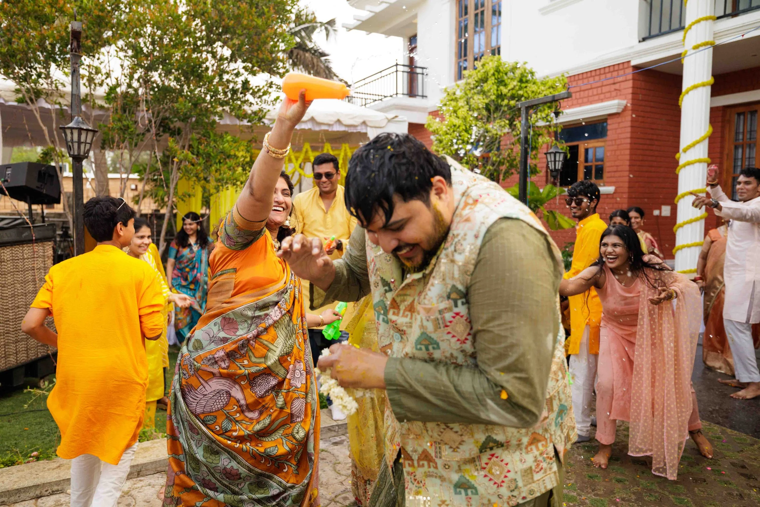 A Golden Day of Joy, Captured by Moments From Heaven Celebrating playful traditions, radiant laughter, and love glowing in golden hues Amirtha and Shyam's Haldi ceremony was a vibrant embrace of both tradition and playful warmth. Dressed in sunshine-hued attire and surrounded by loved ones, the couple was showered with turmeric, laughter, and live celebration, each moment glowing with energy and affection. The decor, awash in marigold tones, set a dreamy scene, petals in the air, turmeric-smeared smiles, and families coming together in a shared moment of joy. As the Haldi paste was lovingly applied, every giggle and teasing glance felt like a promise of forever. Captured by Moments From Heaven, these images go beyond ritual, they transport you into the heart of a love story painted in gold, laughter, and memory.