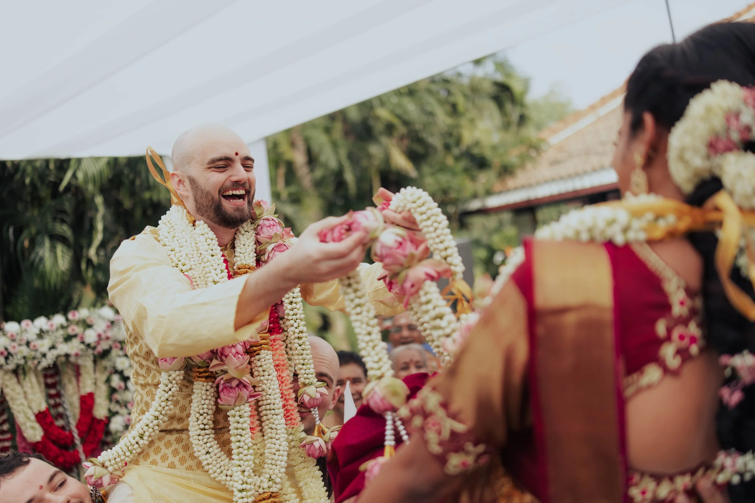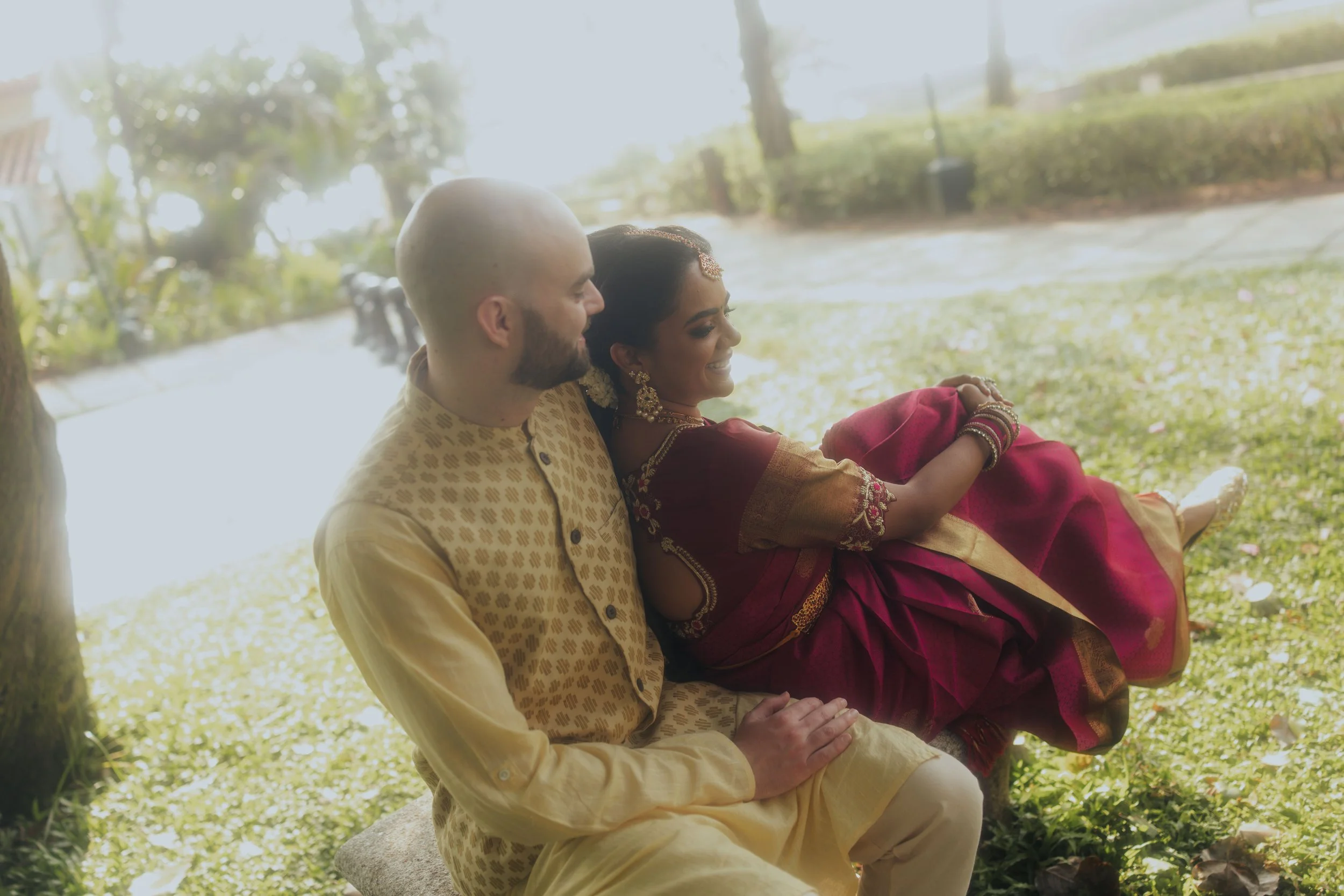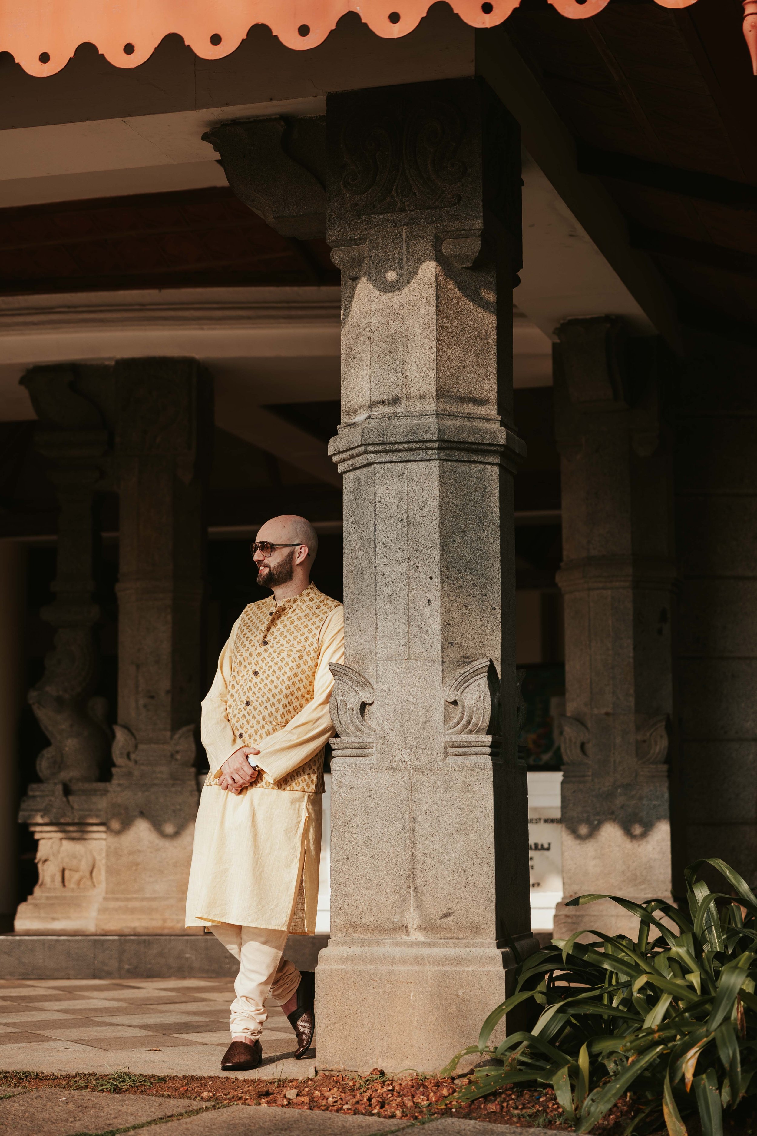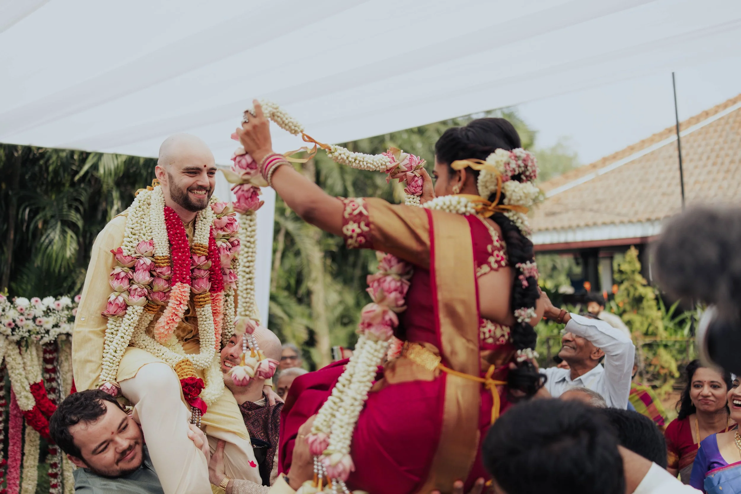 He stepped into the celebration with a respectful smile and an open heart, embracing every vibrant ritual as if it were his own. Amidst the colorful tapestry of Indian traditions, he participated alongside his family and friends, his joy and enthusiasm blending perfectly with the rhythm of the festivities. Every moment reflected his sincere admiration for her heritage, uniting two cultures in a celebration of love and togetherness.