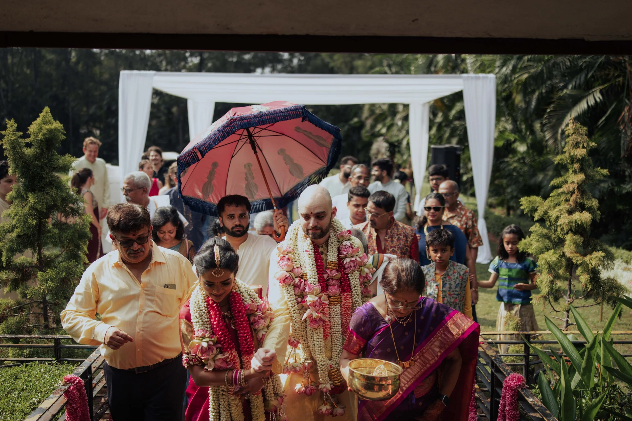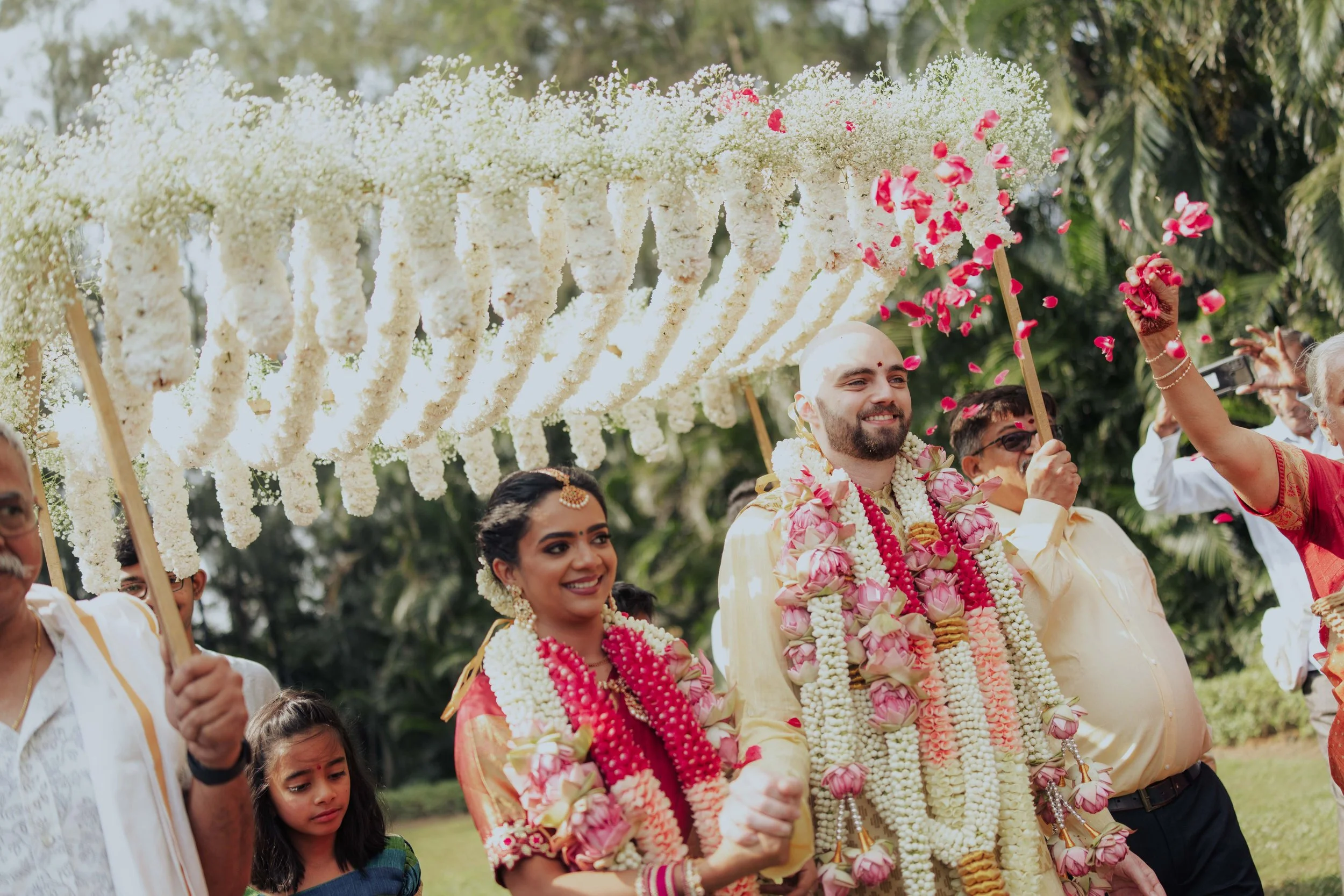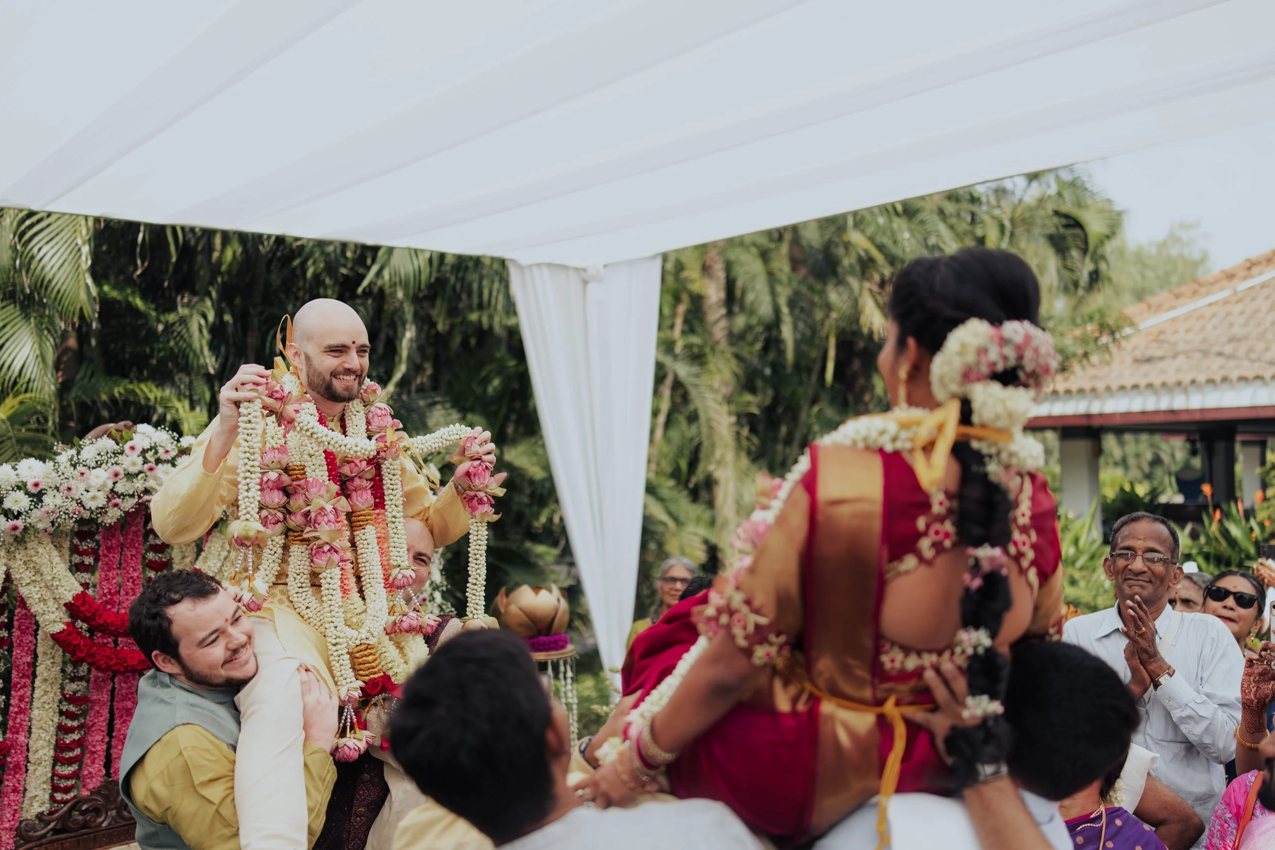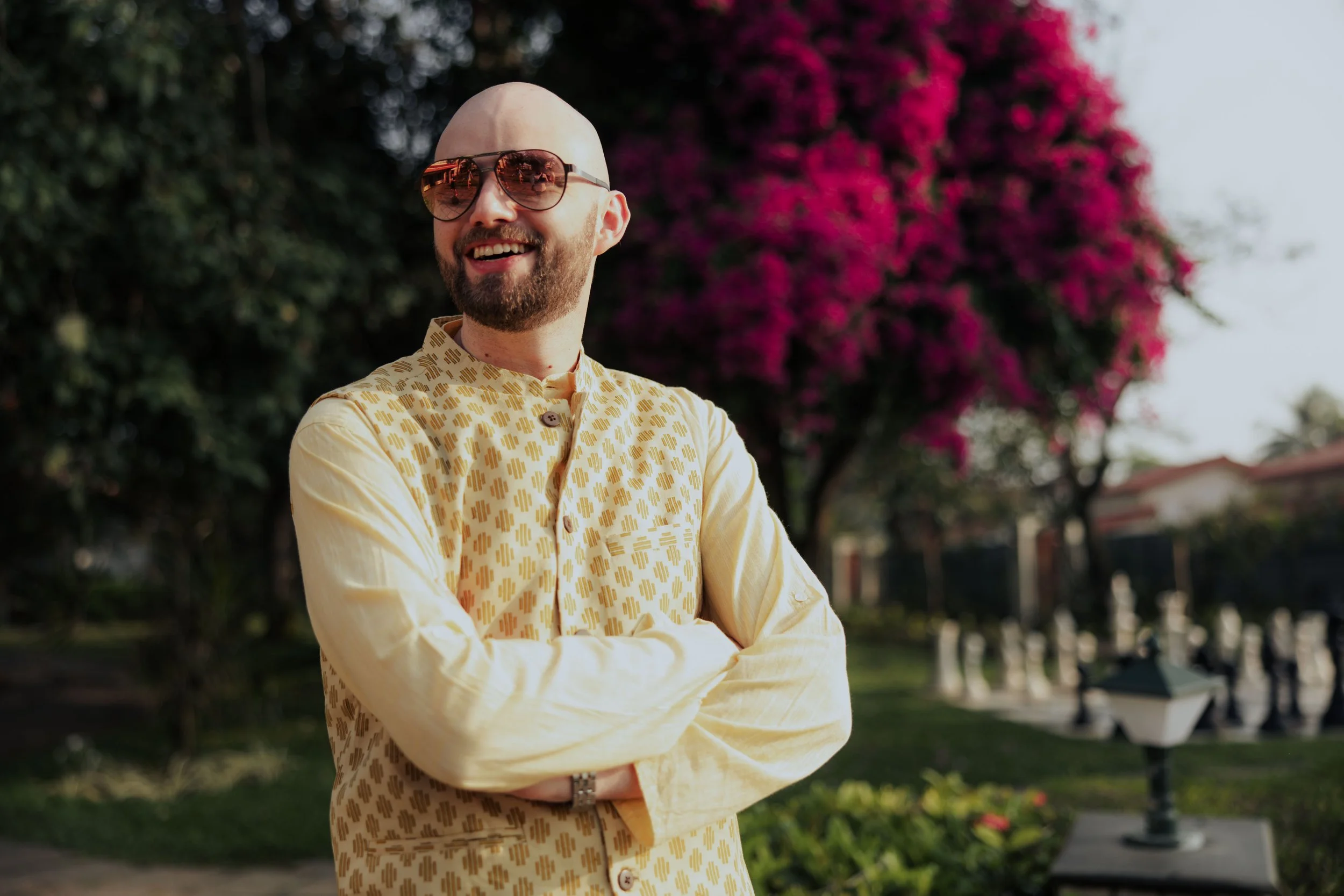 He stepped into the celebration with a respectful smile and an open heart, embracing every vibrant ritual as if it were his own. Amidst the colorful tapestry of Indian traditions, he participated alongside his family and friends, his joy and enthusiasm blending perfectly with the rhythm of the festivities. Every moment reflected his sincere admiration for her heritage, uniting two cultures in a celebration of love and togetherness.