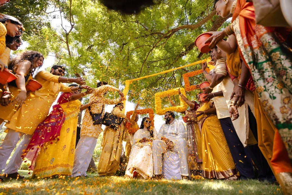 Celebrating golden traditions, joyous laughter, and the glow of new beginnings In the embrace of turmeric and sunshine, Maninder and Santhamohan’s Haldi ceremony unfolds like liquid gold. Every moment is a celebration of tradition, familial love, and the radiant warmth that only a Haldi can bring. They laughed, hugged, and played among petals and powder, faces glowing, bonds deepening, and blessings flowing freely. This wasn’t a ritual; it was a vibrant symphony of color, emotion, and heartfelt tradition. From the splash of turmeric to affectionate teasing by loved ones, each frame felt like a living, breathing expression of joy. Captured by Moments From Heaven, these images don’t just reflect a ceremony, they preserve the golden spirit of a couple stepping closer together, wrapped in laughter, love, and the timeless ritual of Haldi.