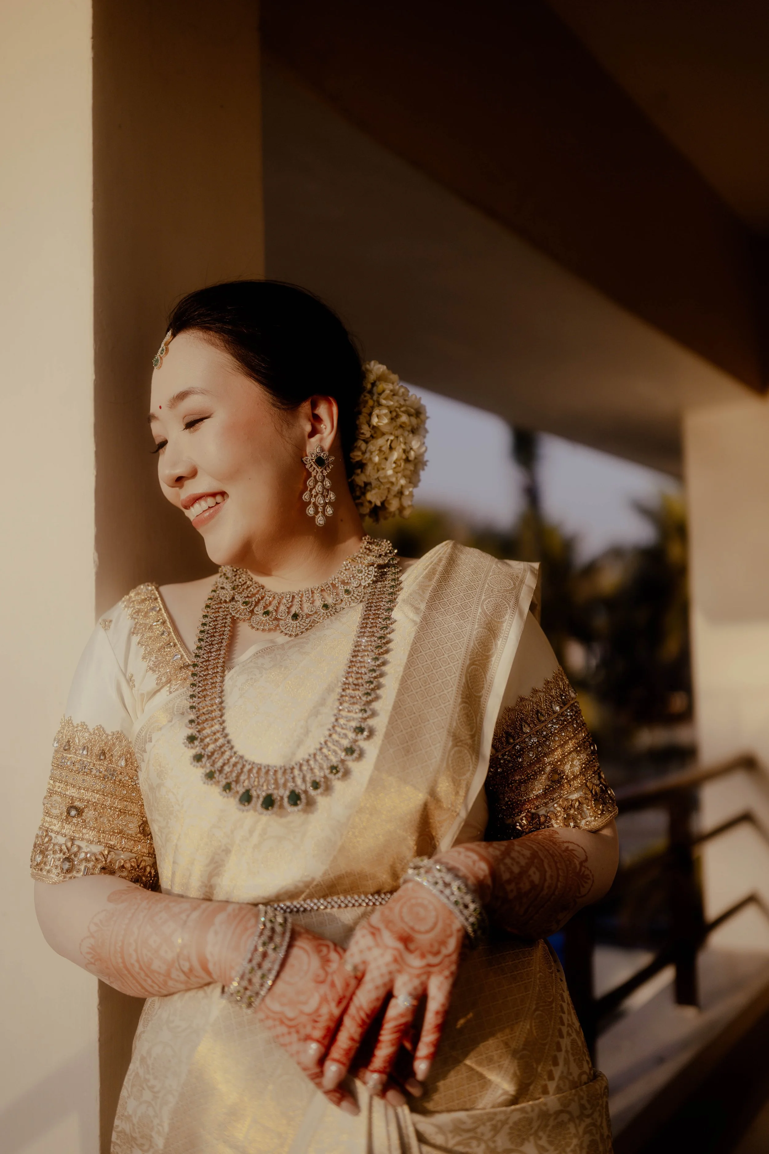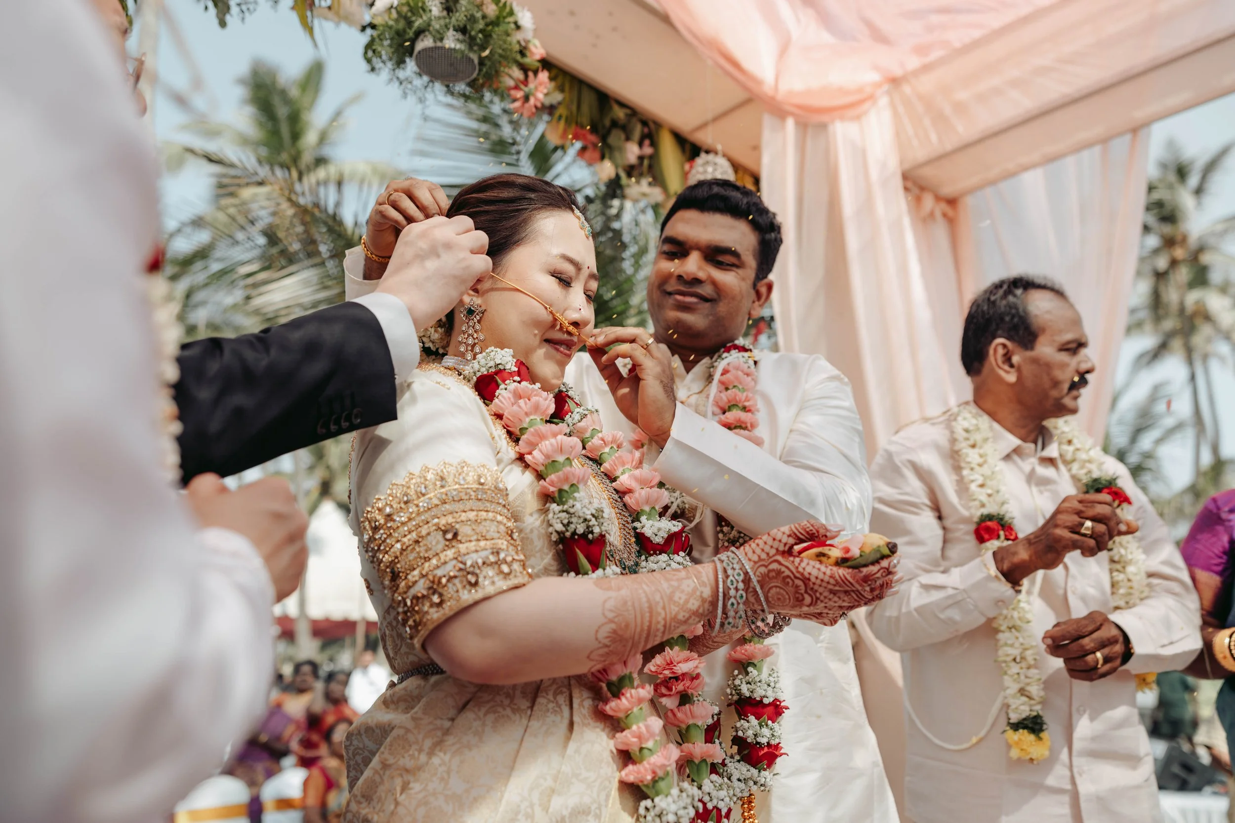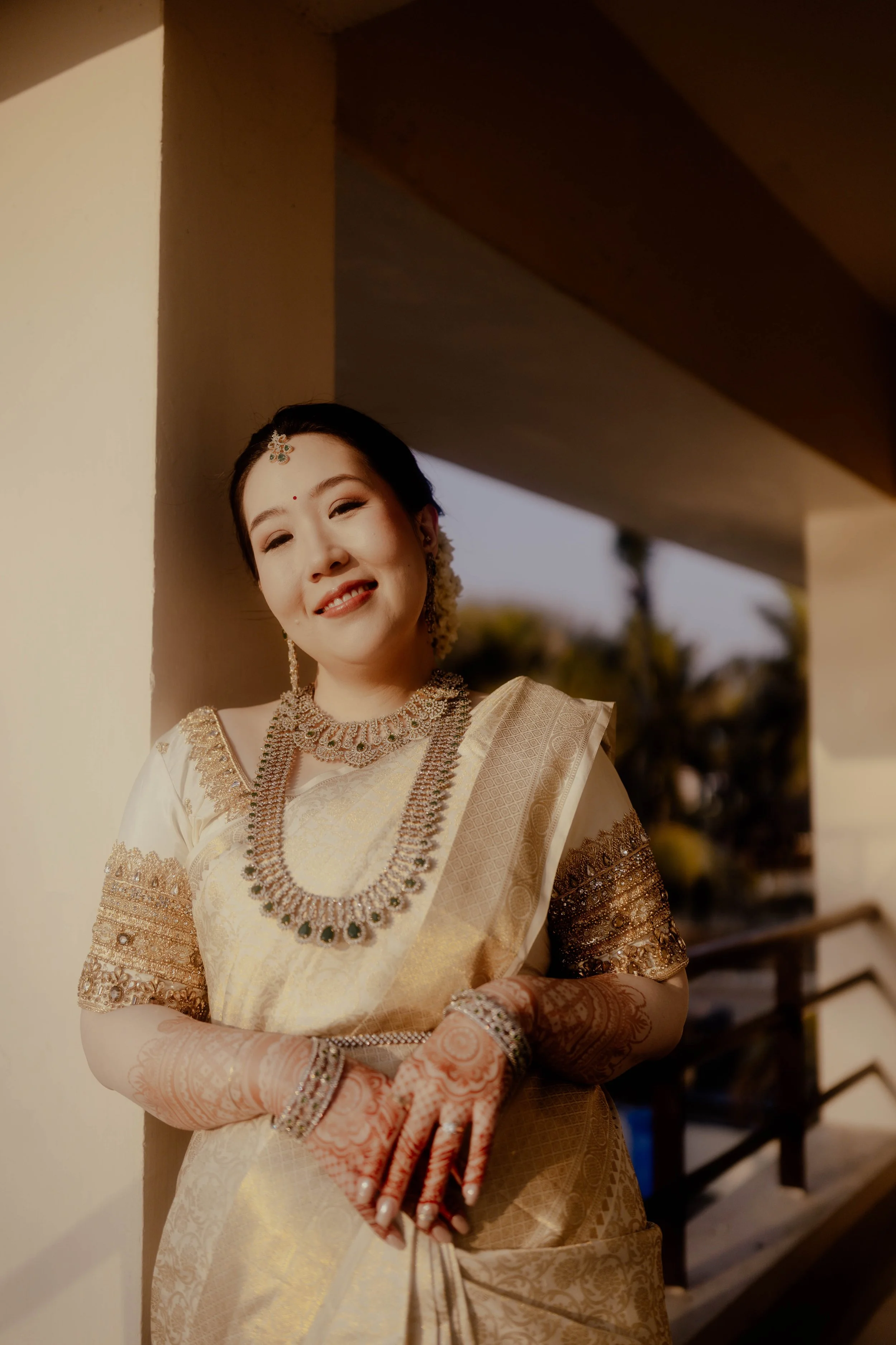 Karmukilan, an Indian groom, and Michaela, a Korean bride, found love beyond borders, weaving a beautiful international love story. Their journey began with a chance encounter, blossoming into a deep bond despite cultural and geographical differences. Embracing each other's traditions, they celebrated a vibrant wedding, blending the colors of India with the elegance of Korea. Their love stands as a testament to the power of connection, proving that true love knows no boundaries